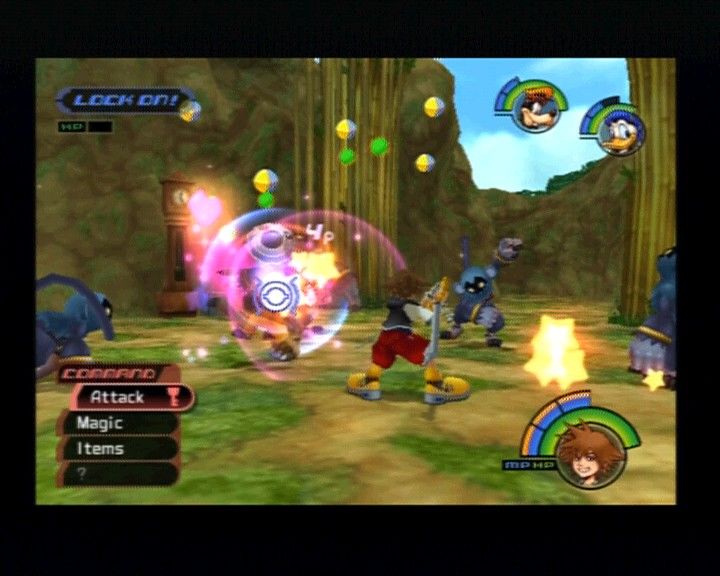 Als ein übernatürlicher Sturm den 14-jährigen Sora in eine unbekannte Welt verschlägt, begiebt er sich auf die Suche nach seinen ebenfalls verschollenen Freunden. Begleite Sora in Kingdom Hearts 1 für die PS2, der sich mit Hofmagier Donald und Hauptmann Goofy zusammmenschliesst, auf seiner heldenhaften Suche nach seinen Freunden und seinem Kampf gegen die finsteren "Herzlosen".